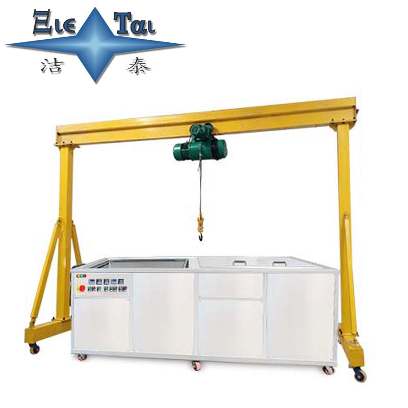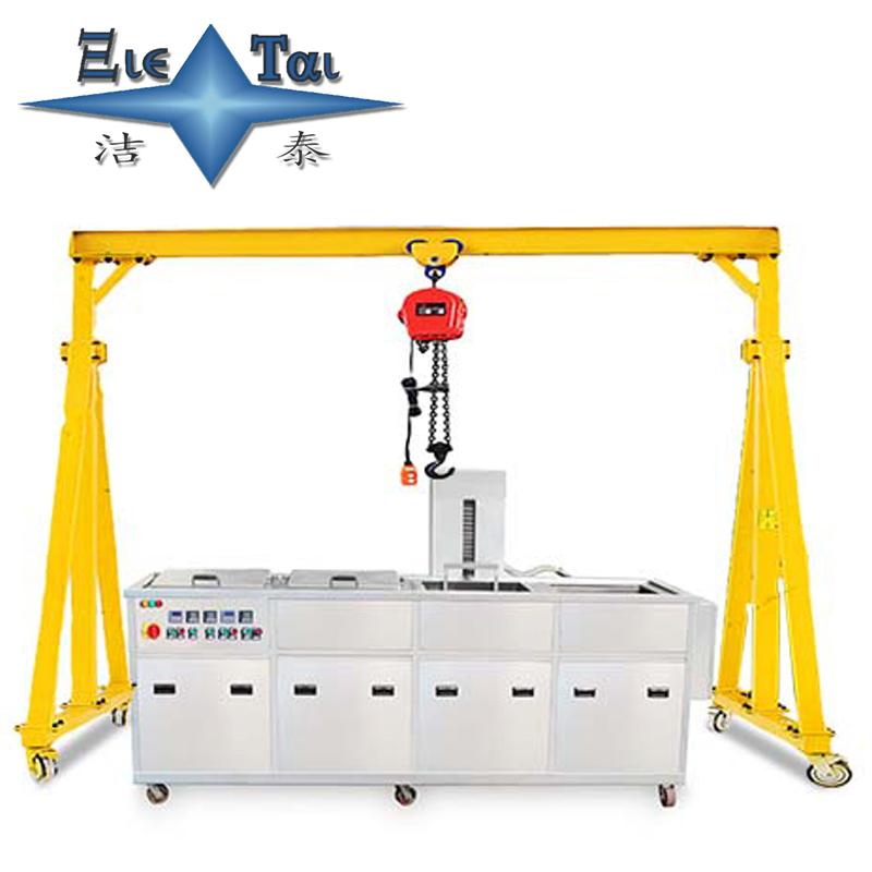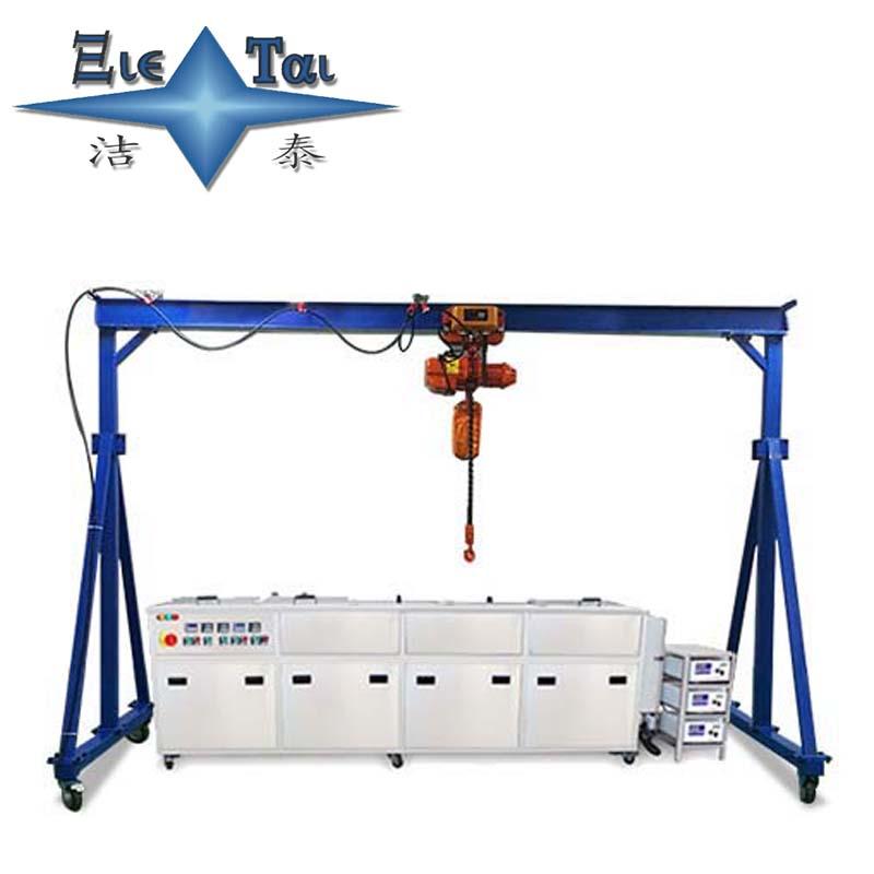 潔泰行吊式超聲波清洗機(jī)也叫電動葫蘆多槽式超聲波清洗機(jī),一般都是按照客戶工件需求來進(jìn)行設(shè)計制造。該產(chǎn)品可以選擇超聲波清洗,超聲波漂洗,熱浸泡,壓縮空氣攪拌浸泡,烘干,化學(xué)拋光,上油等工藝或工序組合,由于采用多道清洗方式,清洗液能夠多級精密過濾,可以有效保證產(chǎn)品的清潔度,按客戶要求設(shè)計洗凈流程。