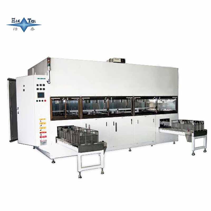 | 產品特點 | 1、采用城邦馬達,定位準確,柔性夾臂搬運; 2、全封閉管理,保證了清洗環境潔凈; 3、三菱可編程PLC自動控制,臺灣威綸人機界面; 4、適應多種產品清洗,設置拋動助洗; 5、水基環保超聲波清洗、DI水洗、慢拉脫水隧道式熱風干燥等組合式工藝; 6、支持非標定制; 7、完備的防呆保護功能安全可靠 |
